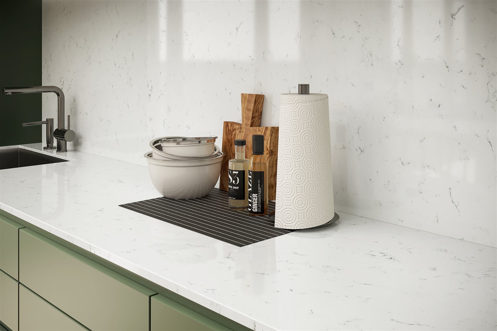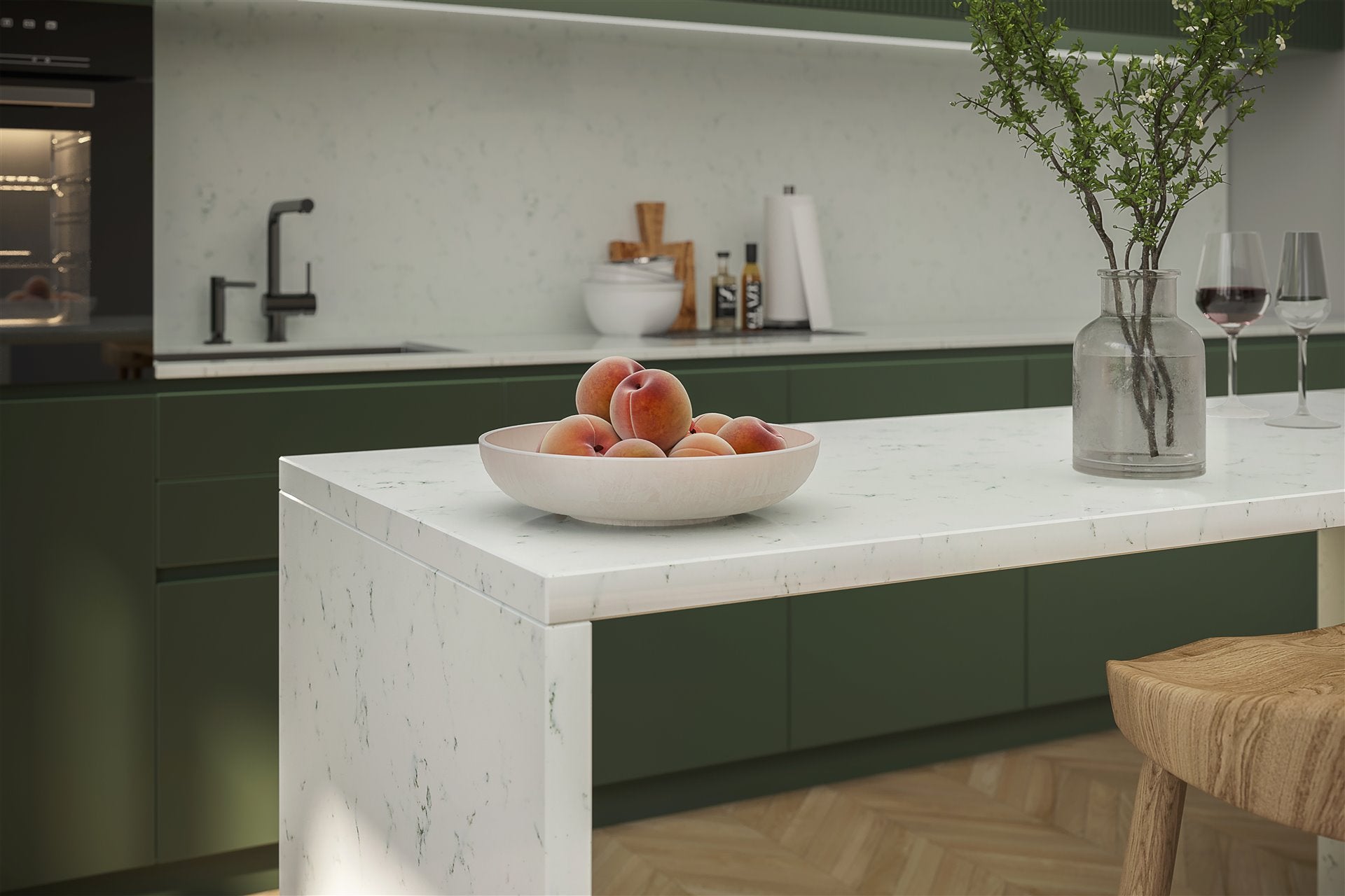 Crafted with meticulous attention to detail, Sierra White quartz slabs feature a clean, crisp white background with subtle flecks and veining that mimic the natural allure of snow-capped peaks. The smooth surface and minimalist design create a sense of spaciousness and tranquility, making Sierra White the perfect choice for modern and contemporary interiors alike.