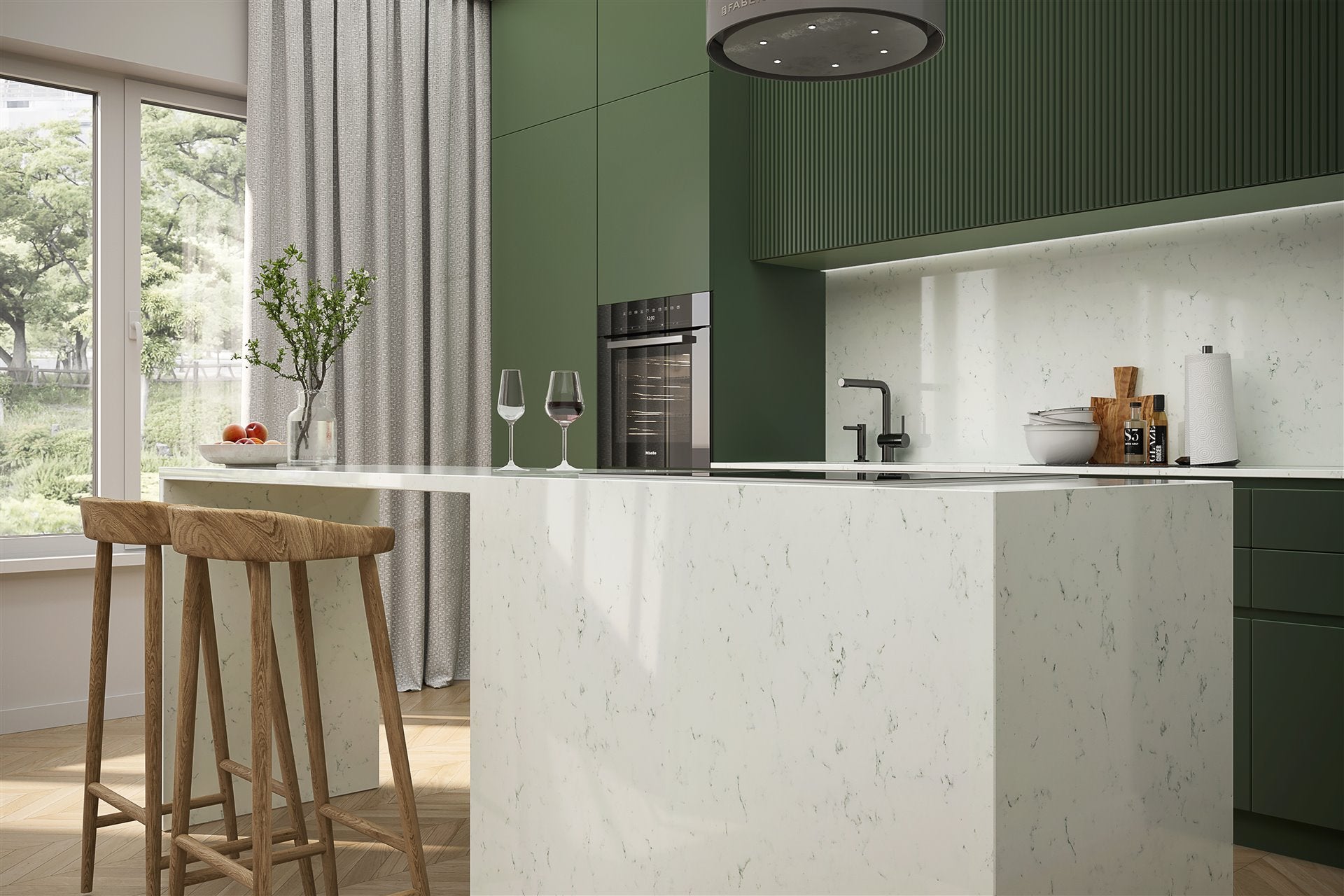 Experience the enduring elegance of Sierra White Quartz Slab Countertops and elevate your home with the timeless beauty of nature's grandeur.